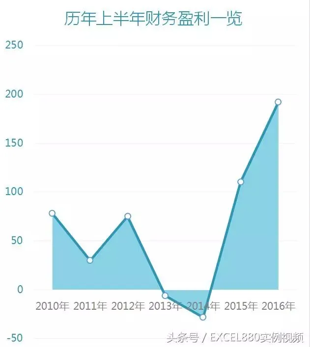 下面盈余的面积图,留意坐标的方位在图表中心,这儿能够根据需要自己调整到下方