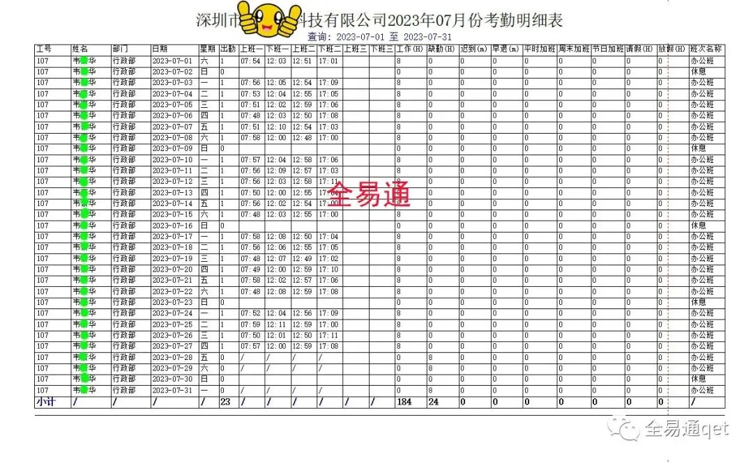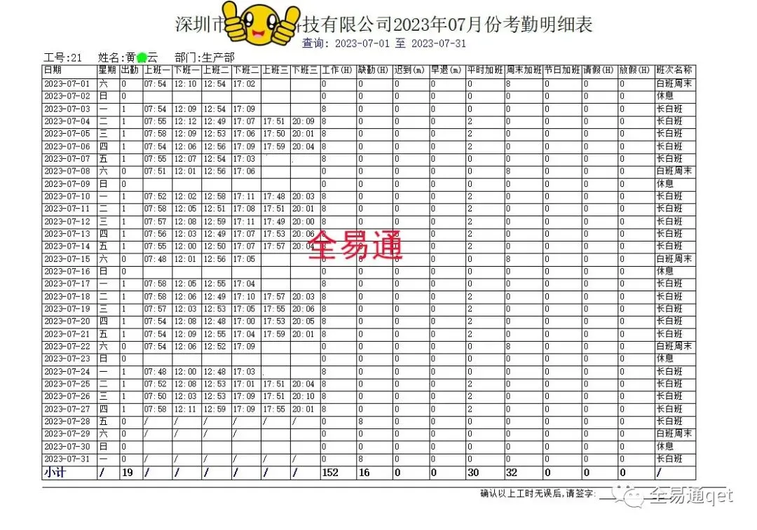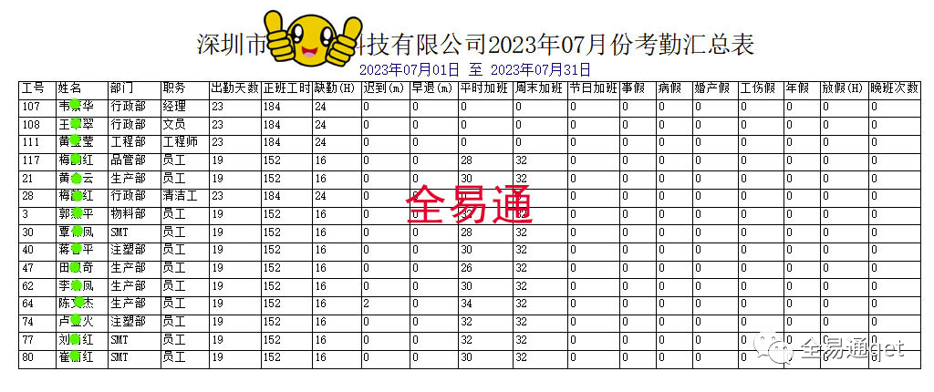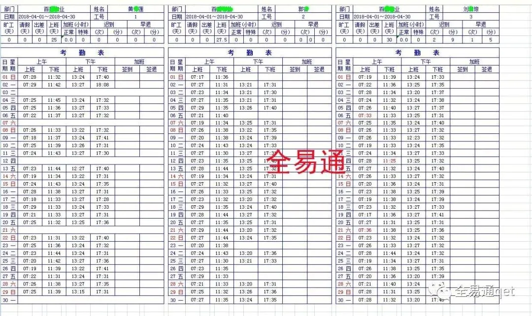 那么,考勤工资表格报表模板格式到底应该怎么做和制作,才能让领导满意,得到认可呢?以下是全易通结合现有工厂企业公司HR一直经常使用的考勤工资表格报表模板,给大家作一个参考,让大家以后做和制作考勤工资表格报表时,再也不用为此而烦恼了!