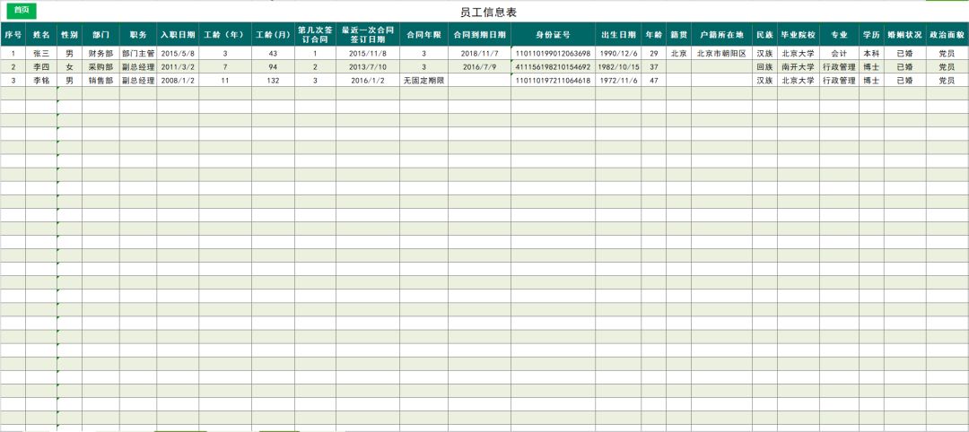 这个系统模板使用的第一步就是录入员工信息,后续相关运算,全都依据员工信息表。