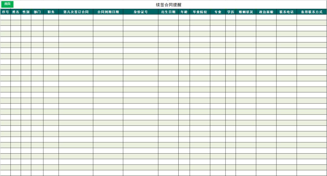 表格自带函数,对于需要续签的合同,会自动生成详情提醒。让HR绝不会因为合同忘记续签导致企业支付补偿金的情形。