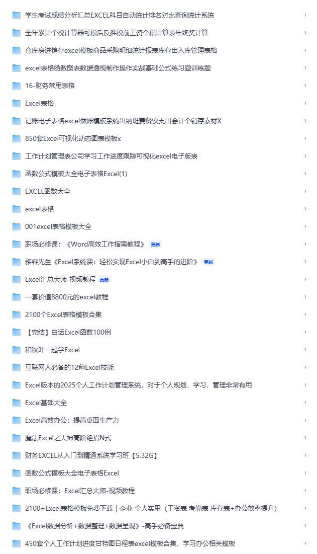 本资料包含Excel相关的视频教程、表格模板及练习素材。教程涵盖Excel基础技能、数据模拟、报表生成、函数应用等实操内容;模板覆盖财务、仓库、工作计划、成绩分析等多场景,含财务表格、仓库进销存表、工作计划表等;另有Excel操作练习素材供实操练习。适用于需要学习Excel技能、获取办公表格模板的职场人士、财务人员及办公软件学习者。