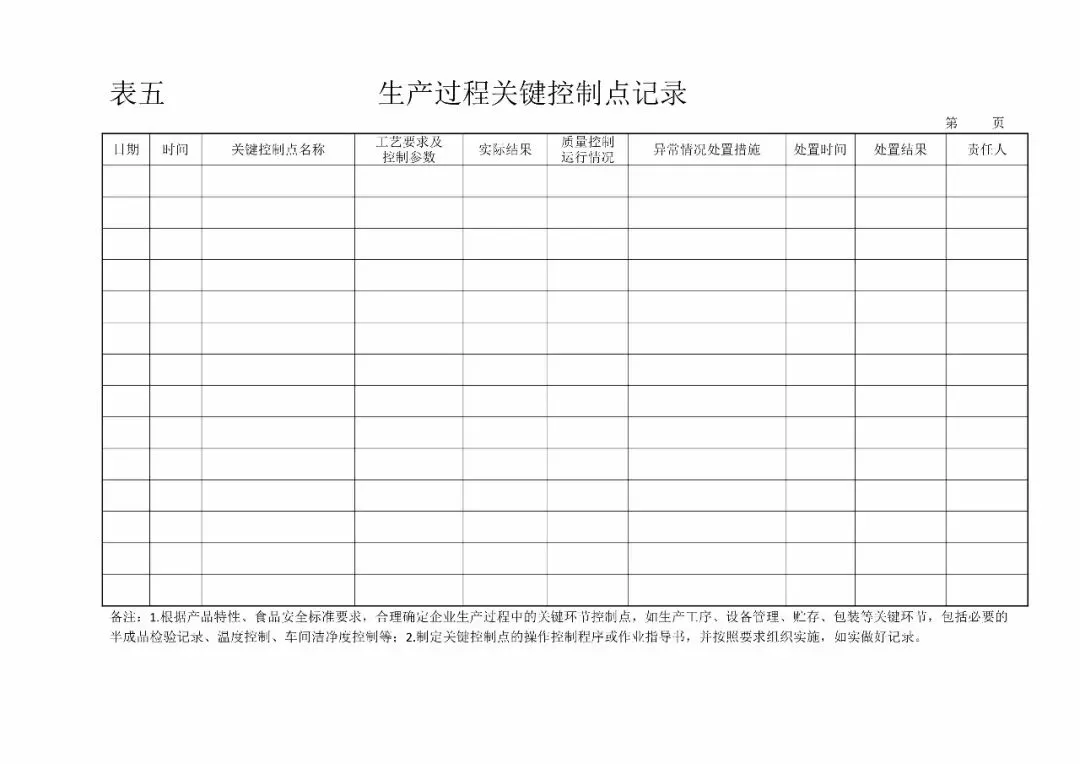 | 5、关键控制点记录(《食品生产许可审查通则》1.11) |