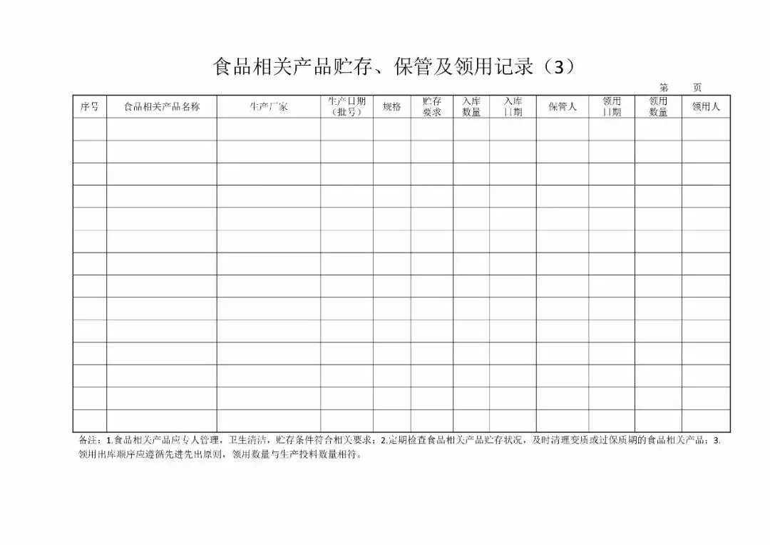 | 3、食品贮存记录(GB14881-2013食品生产通用卫生规范14.1.1)(出入库记录) |