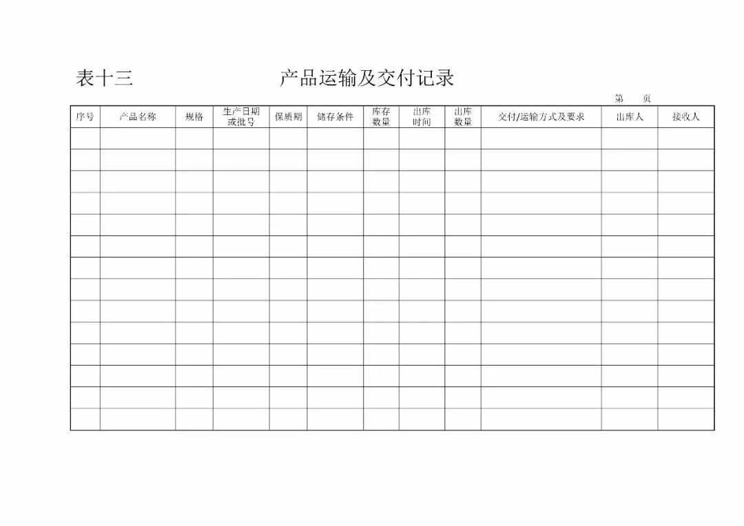 | 13、运输交付记录(《食品安全法》第四十六条) |