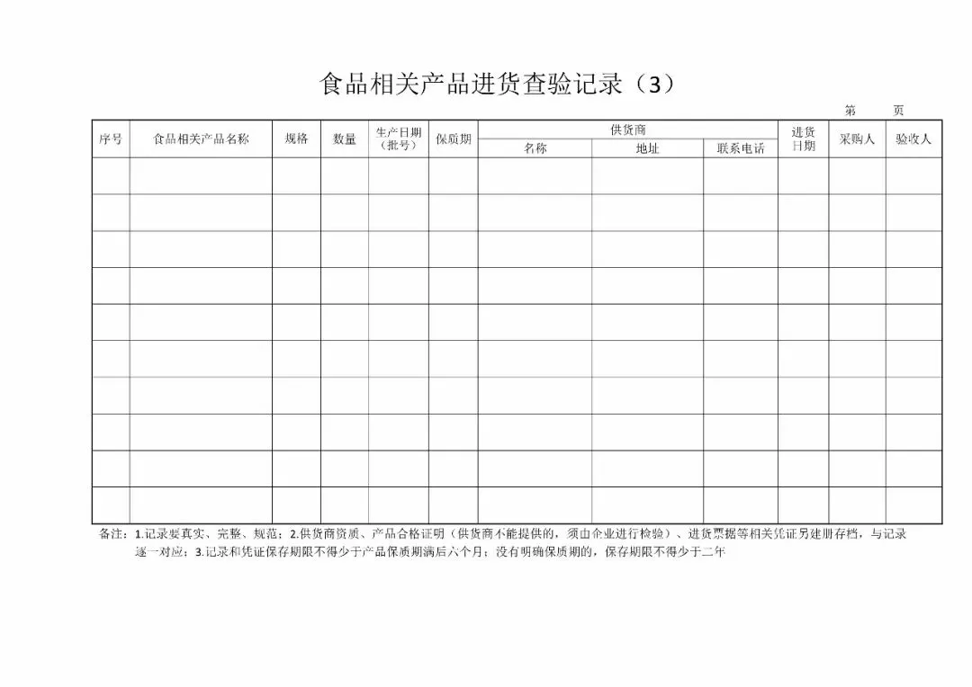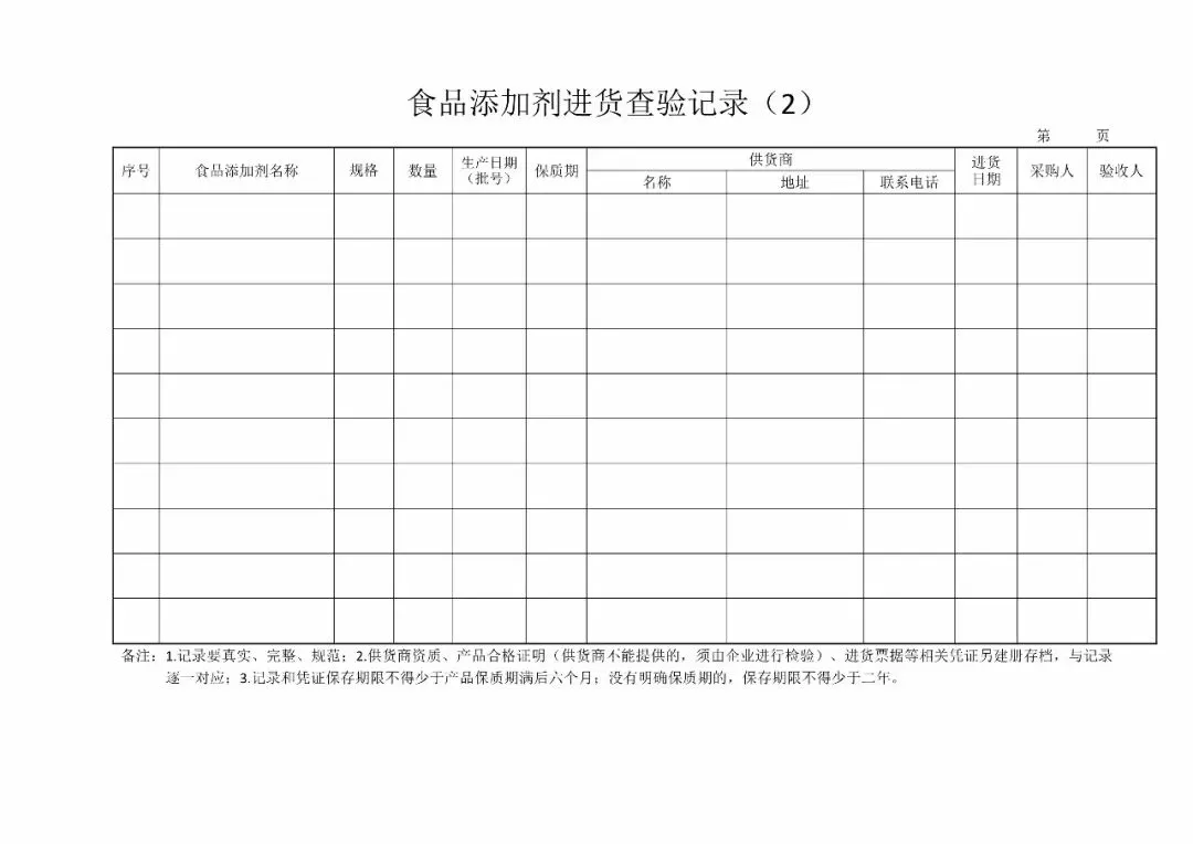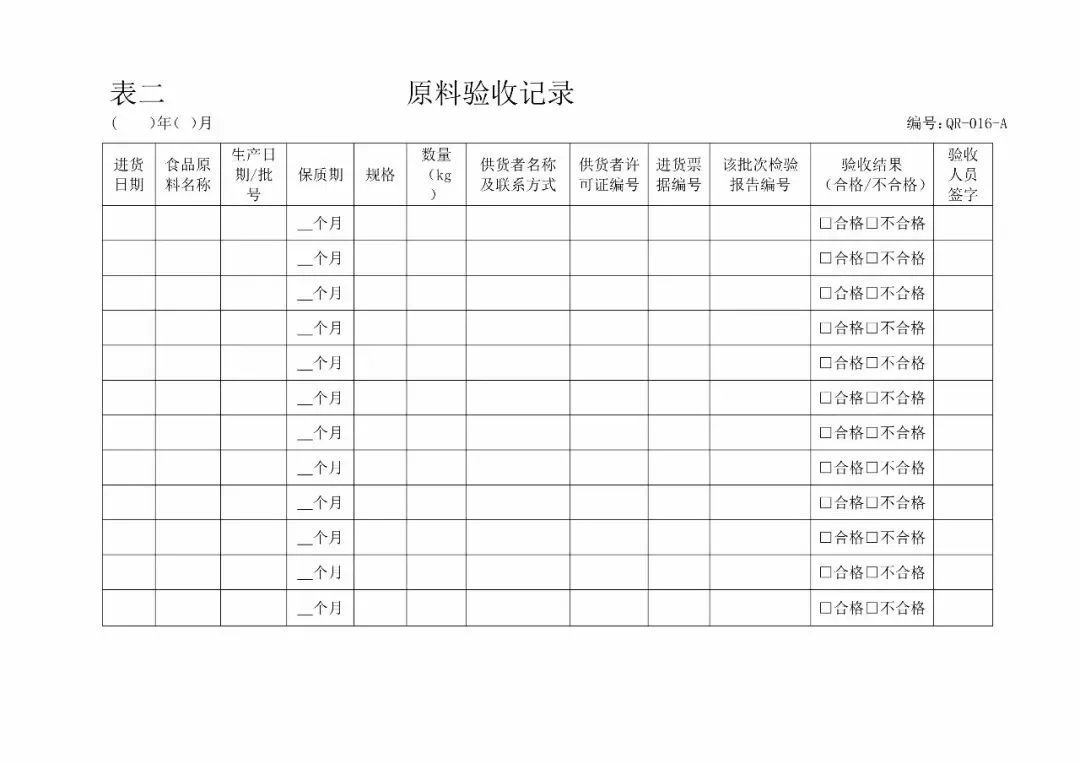 | 2、原料验收记录(《食品安全法》第五十条第一款) |
