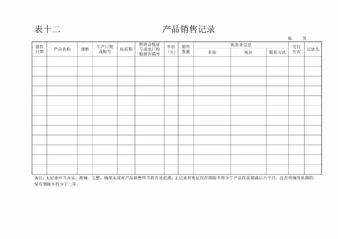 | 12、产品销售记录(《GB14881-2013食品生产通用卫生规范》14.1.1) |