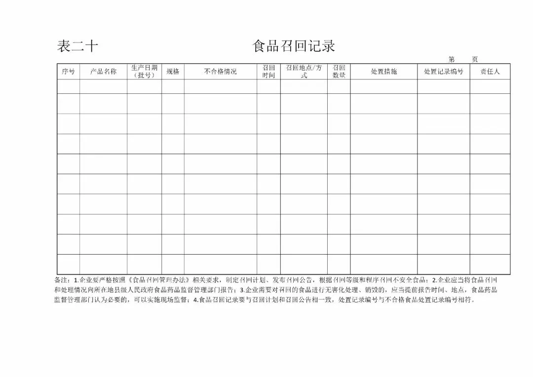| 20、食品召回记录(《食品安全法》第六十三条) |