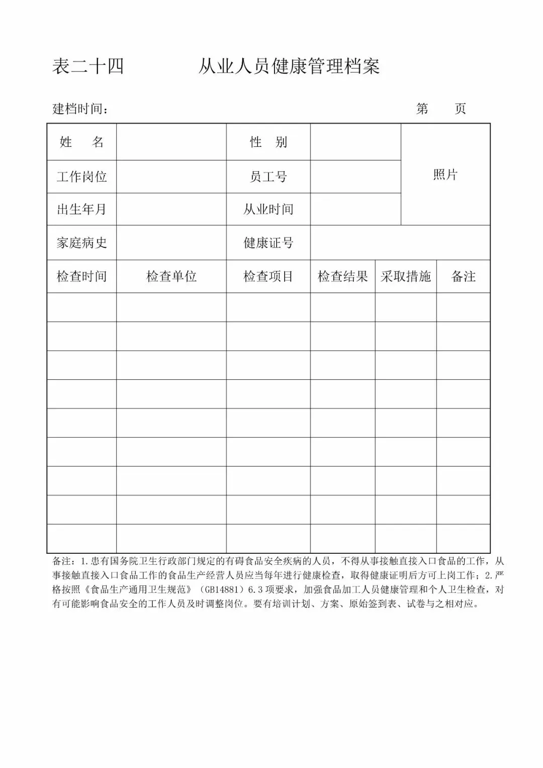 | 24、从业人员健康档案(《食品安全法》第四十五条) |