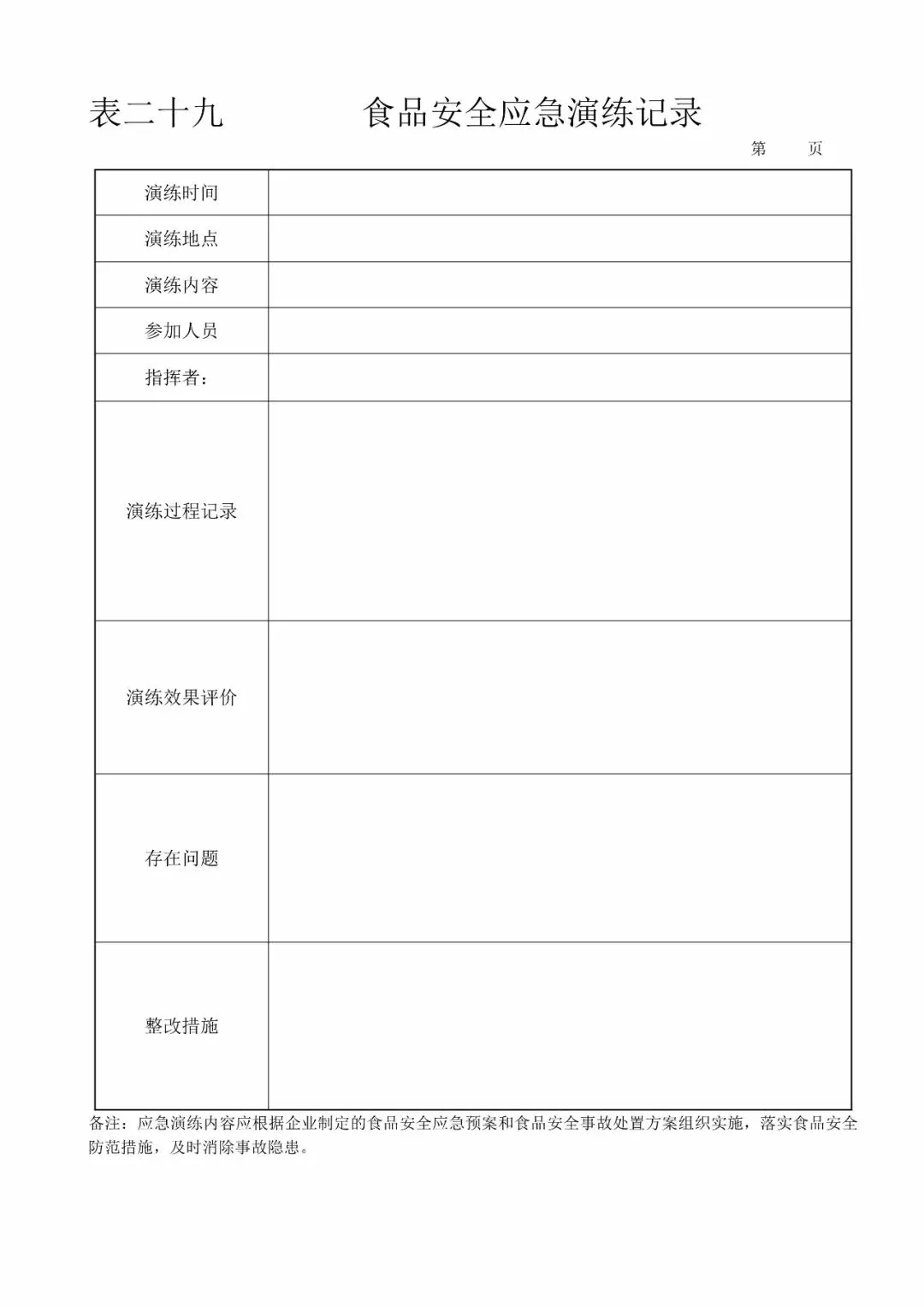 | 29、食品安全应急演练记录(《食品生产日常监督检查要点表》8.2) |
