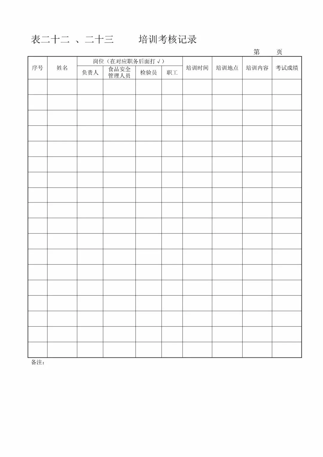 | 23、职工培训记录(《食品安全法》第四十四条第一款) |