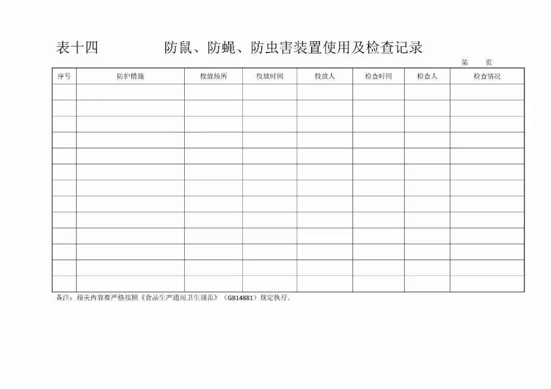 | 14、防鼠、防蝇、防虫害检查记录(《食品生产日常监督检查要点表》1.7) |