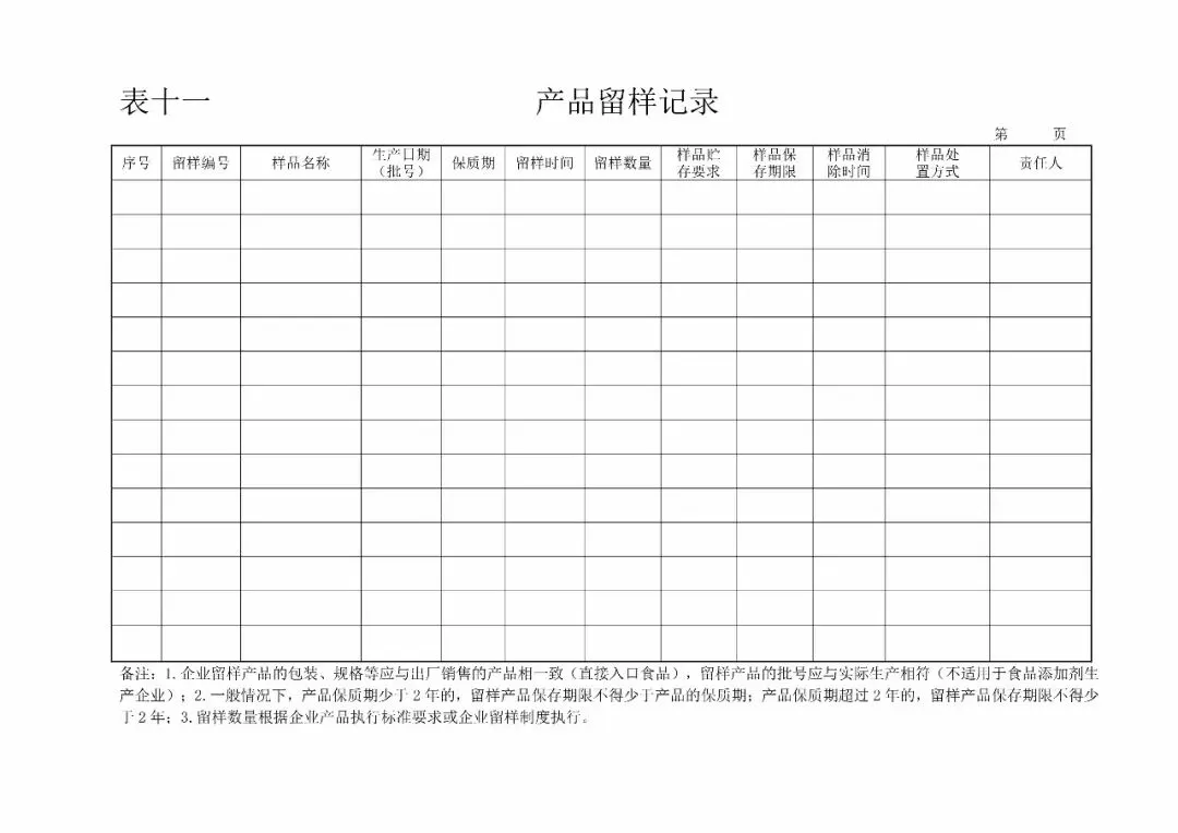 | 11、产品留样记录(GB14881-2013食品生产通用卫生规范9.3) |