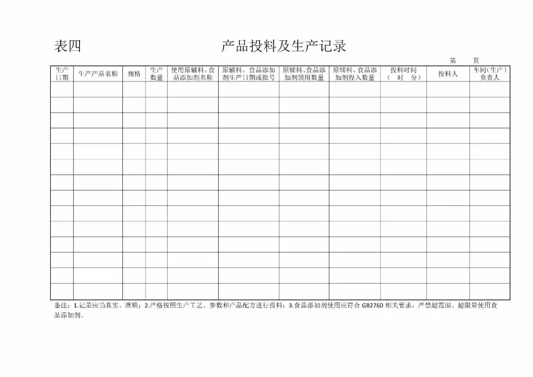 | 4、投料记录(《食品安全法》第四十六条) |
