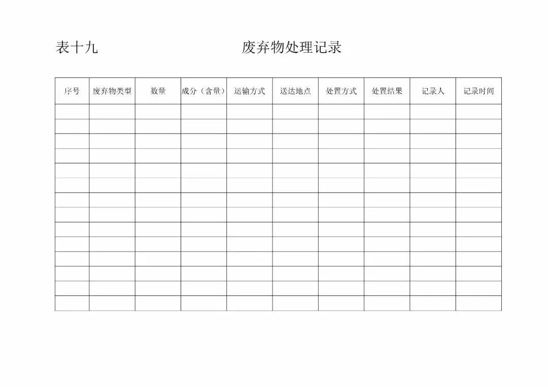 | 19、废弃物处置记录(GB14881-2013食品生产通用卫生规范6.5) |