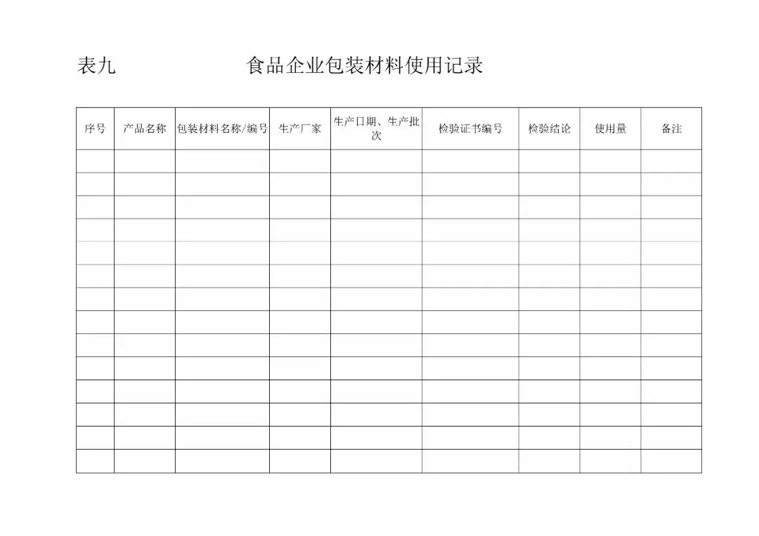| 9、包装记录(《食品安全法》第四十六条) |