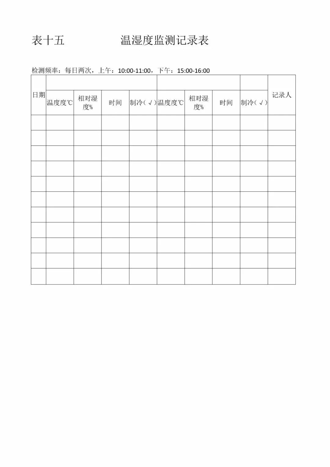 | 15、温、湿度监测记录(《食品生产日常监督检查要点表》3.12) |