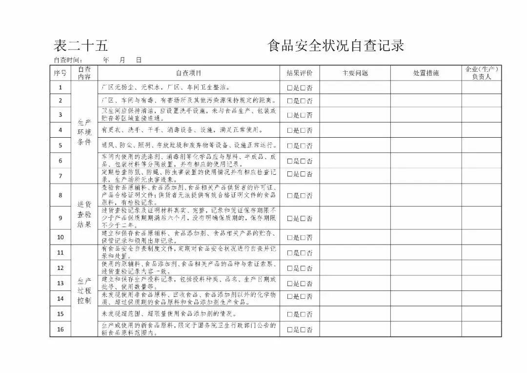 | 25、食品安全自查记录(《食品安全法》第四十七条) |