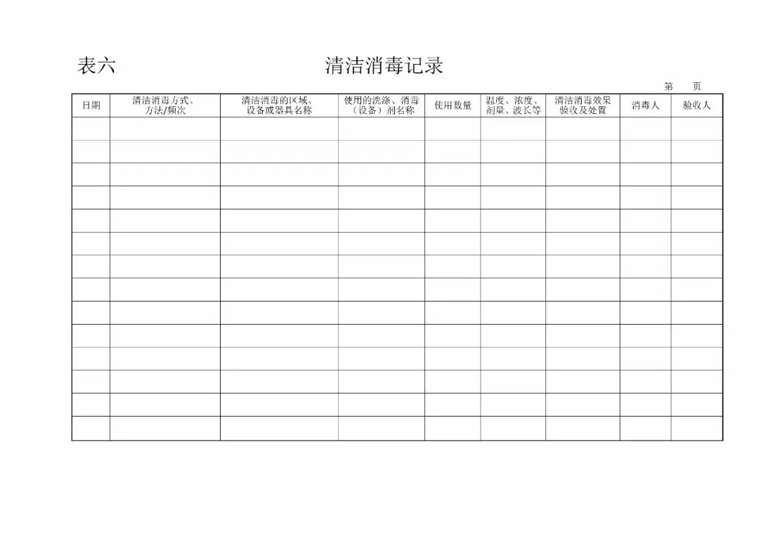| 6、清洁消毒记录(GB14881-2013食品生产通用卫生规范8.2.1) |