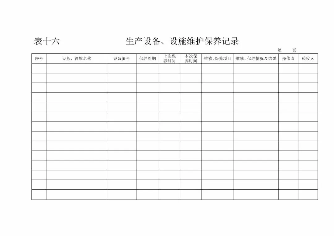 | 16、生产设备、设施维护保养记录(《食品生产日常监督检查要点表》3.13) |