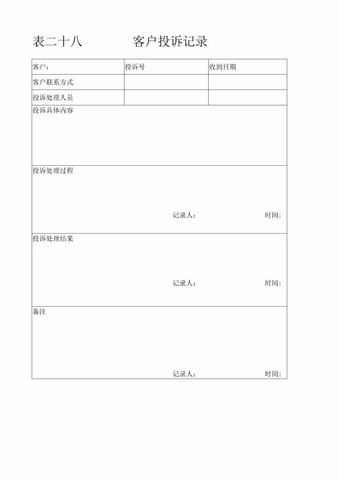 | 28、客户投诉记录(GB14881-2013食品生产通用卫生规范14.1.3) |