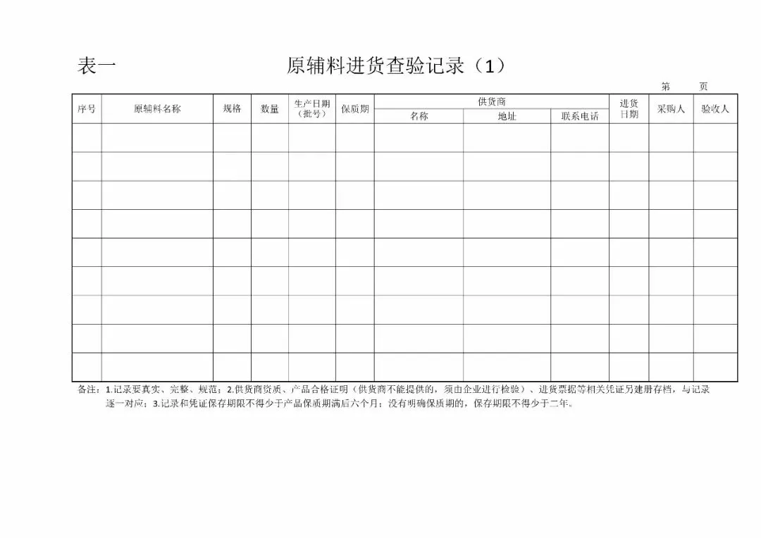| 1、原辅材料进货查验记录(《食品安全法》第五十条第二款) |
