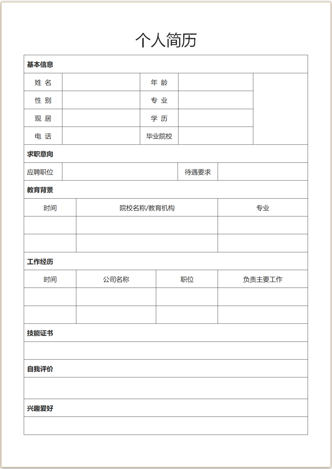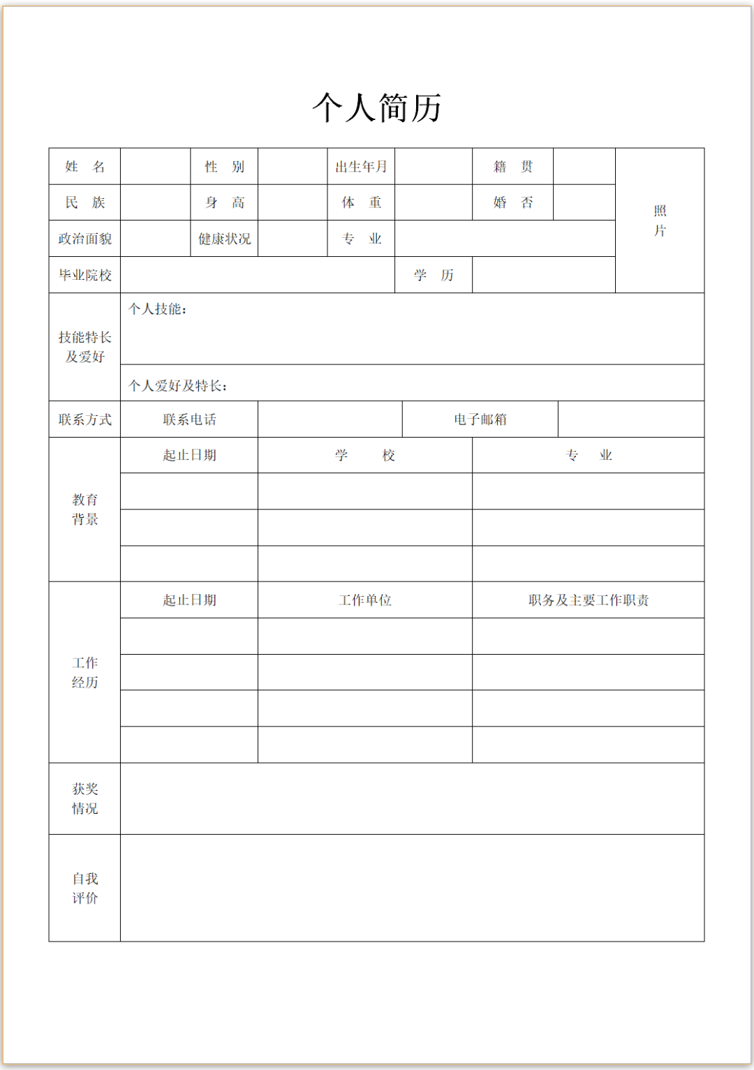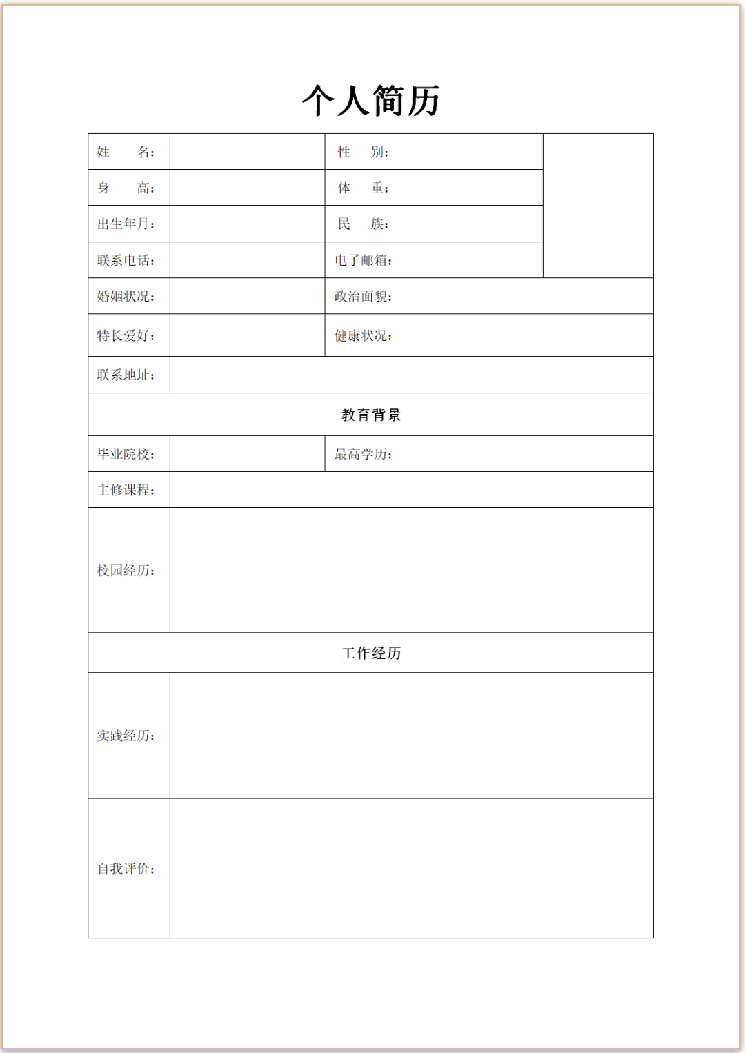 >8款标准空白简历表格模板,WORD文档电子版,可免费下载打印