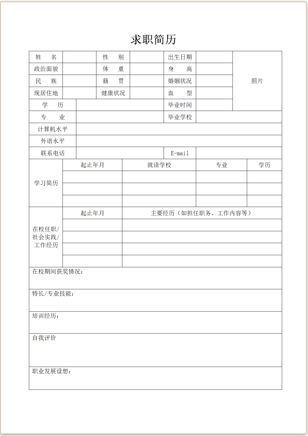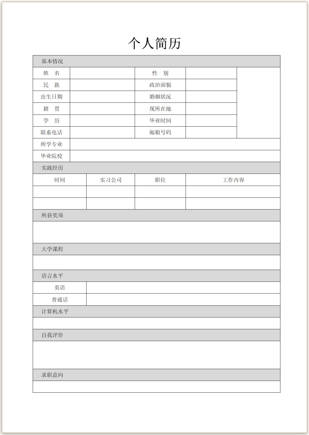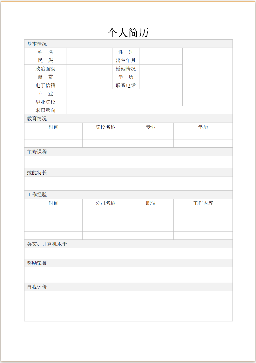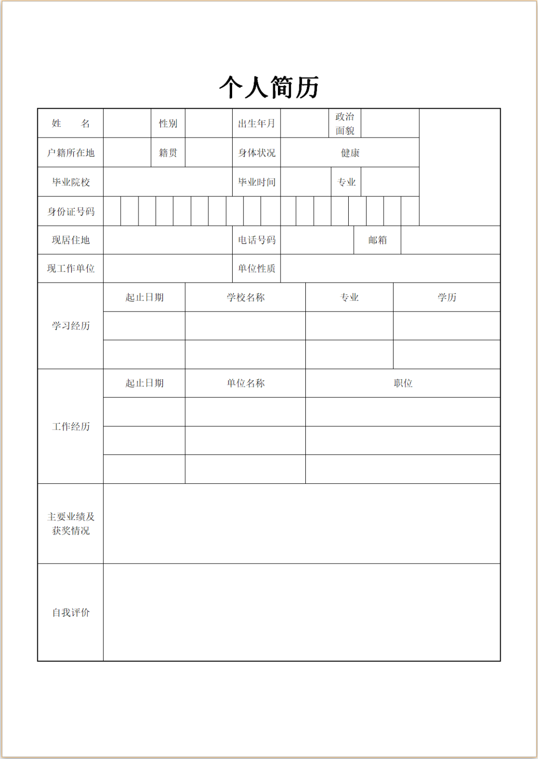>8款标准空白简历表格模板,WORD文档电子版,可免费下载打印