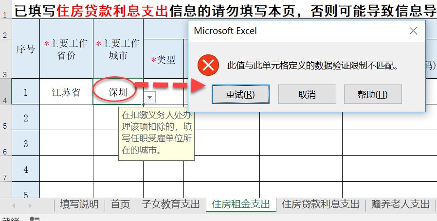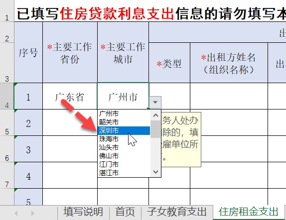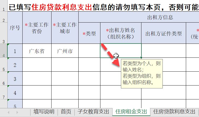 鼠标选择要填写的单元格,都会有相关的提示信息。