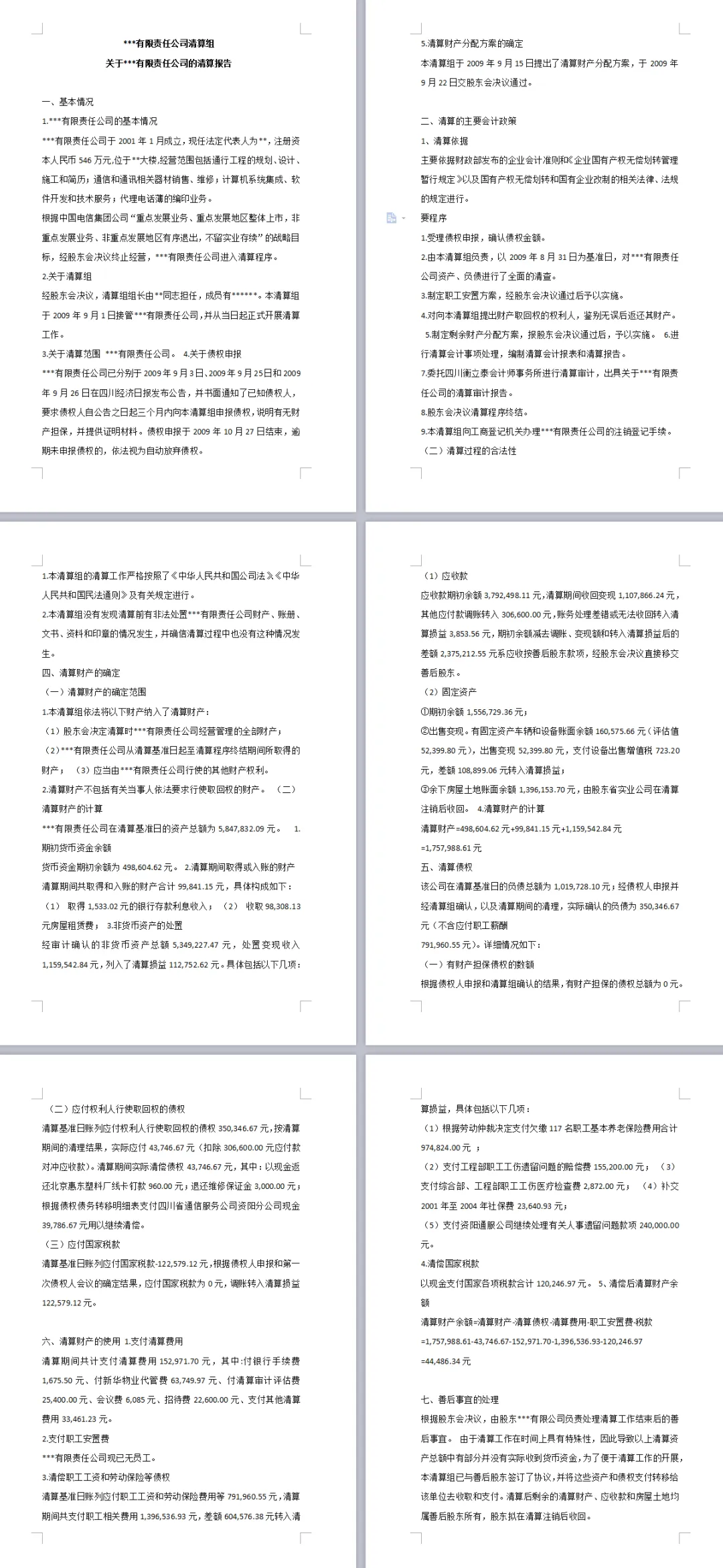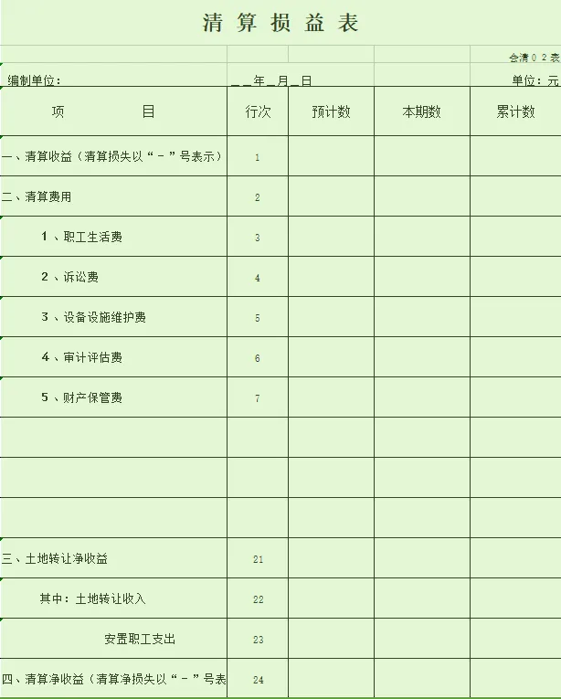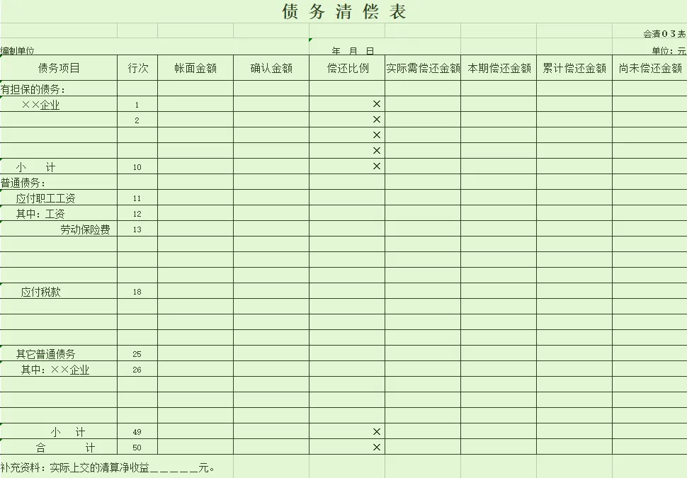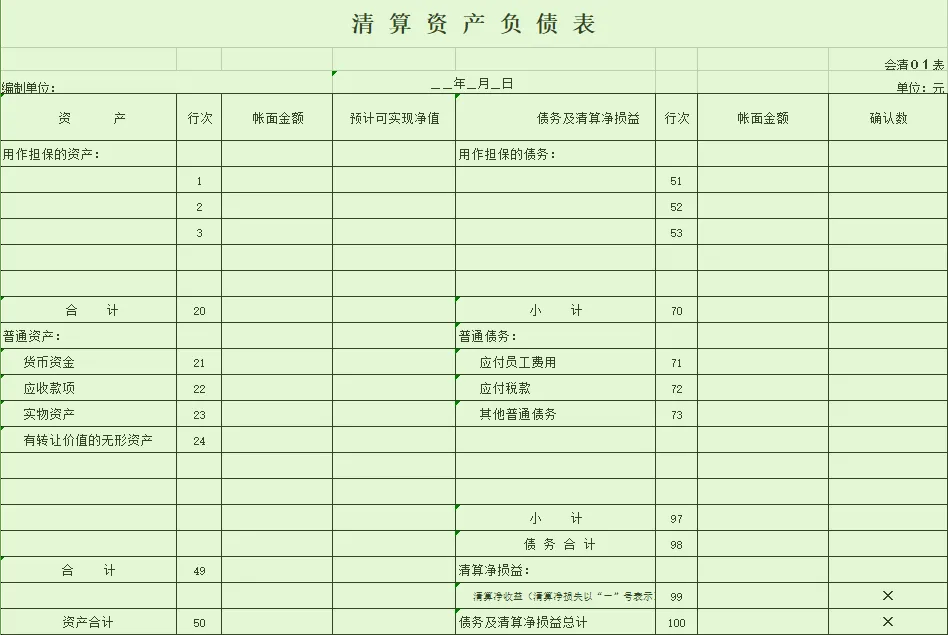 3.公司注销清算表格模板:
