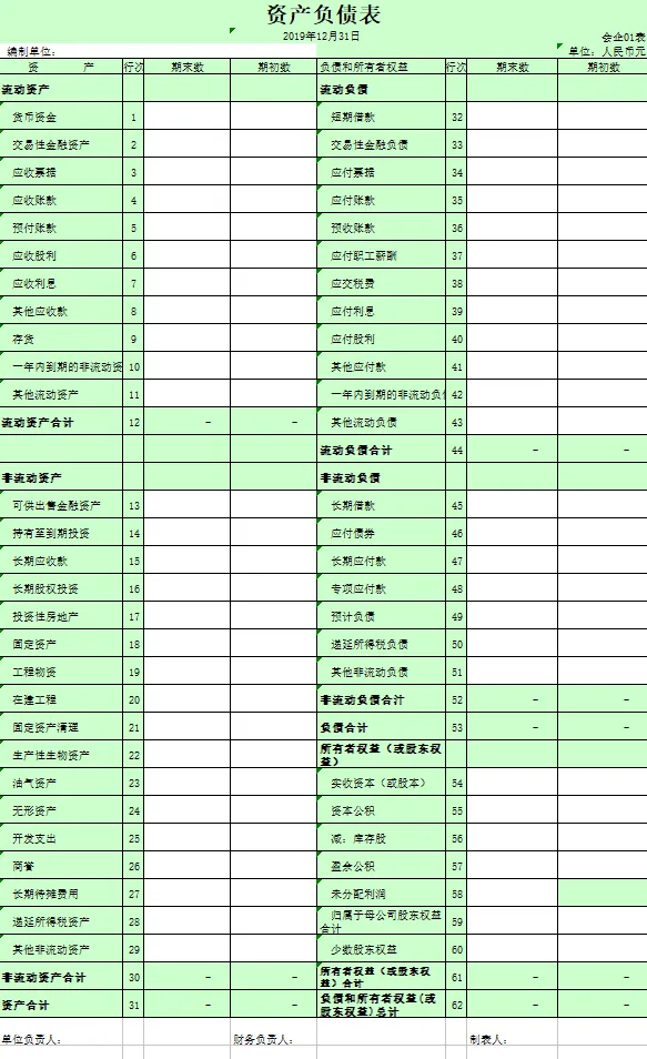 财务报表表格模板(内有公式,直接套用即可)
