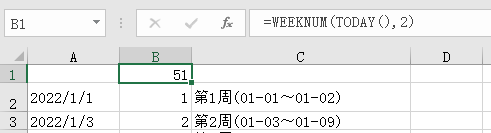 (2)MID($B$1,2,(FIND("周",$B$1)-2))*1部分是提取出周数文本,乘以1转成数字。
