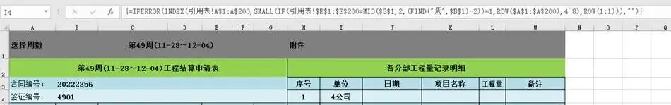 Step2:在周报表设置公式引用本周周次
