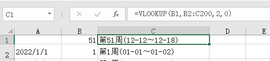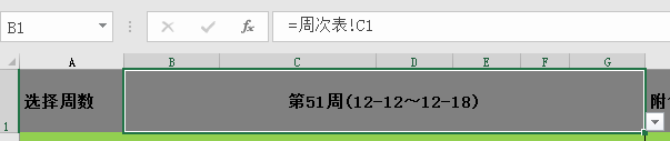 切换到“周报表”工作表,定位到B1单元格,输入公式=周次表!C1。
