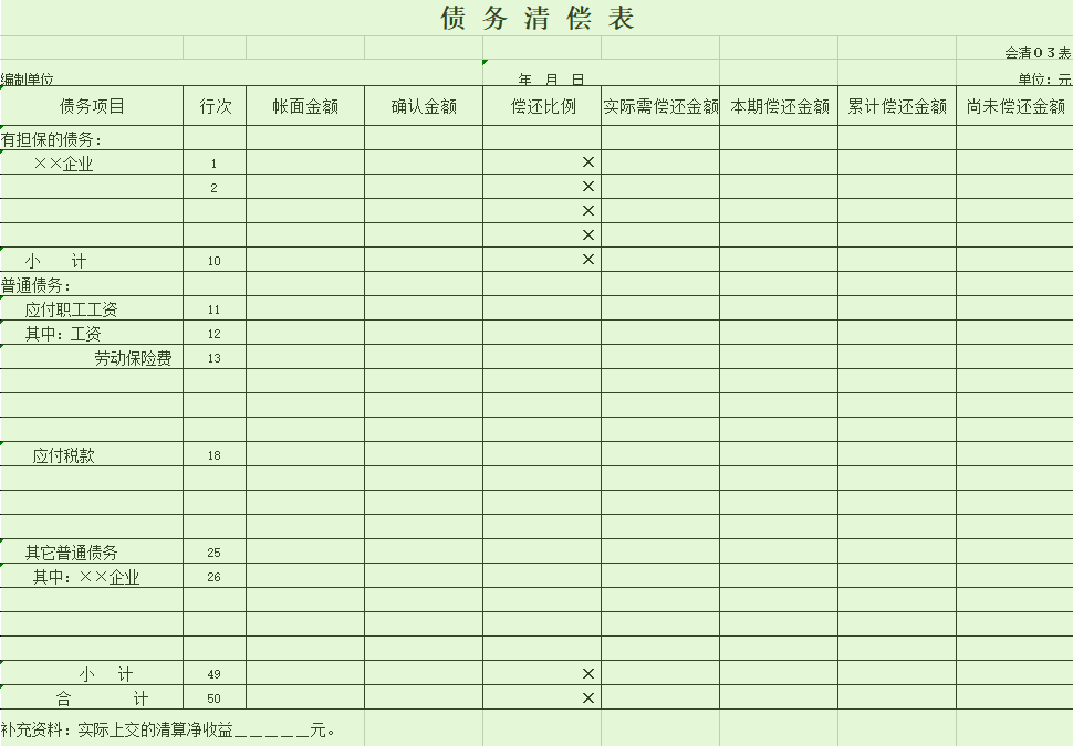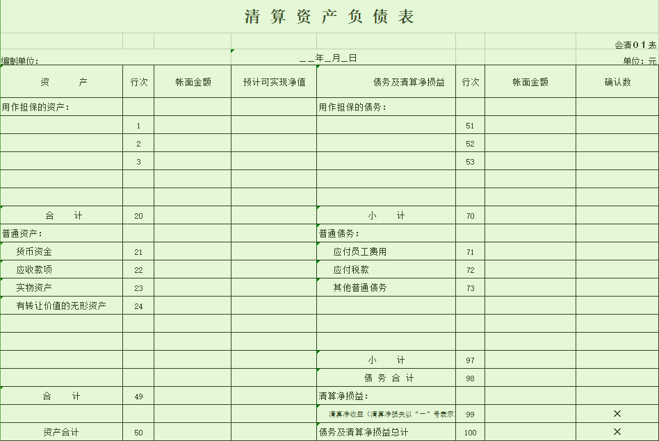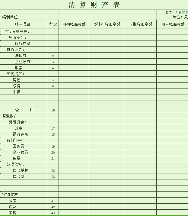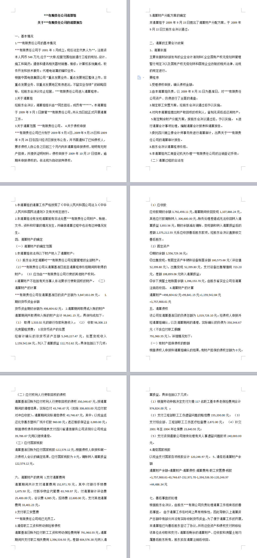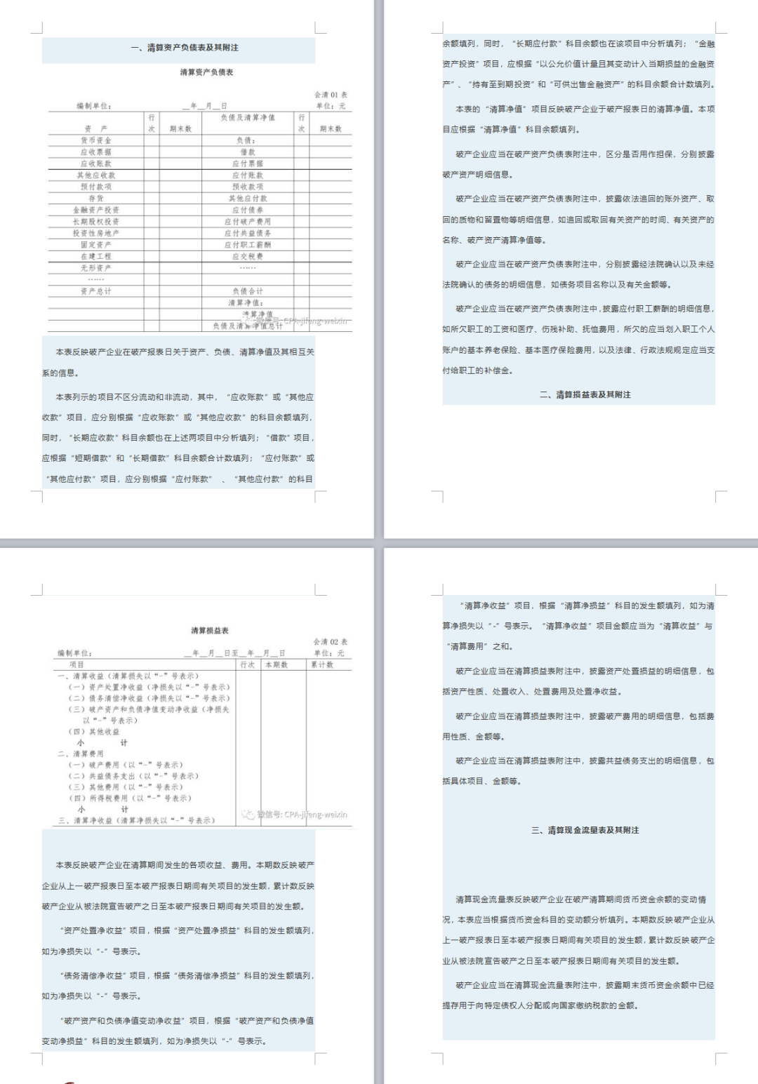 本套资料包含清算报表模板、清算期财务报表模板、公司注销清算表格模板、公司资产清算报告模板、破产企业清算财务报表及其附注、财务清算报告、财务交接表、清算审计报告等,预览如下: