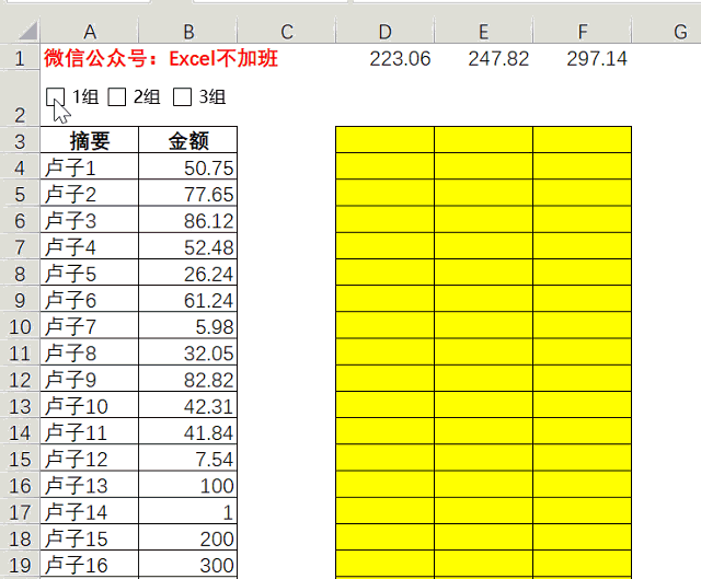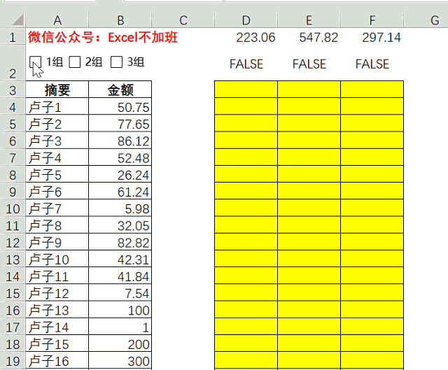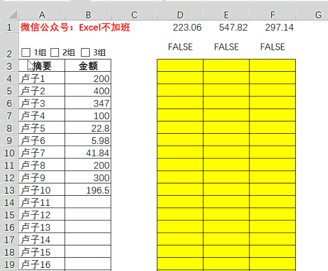 凑金额动画,不断的启用关闭开关,直到直到D3:F3全部为总金额为止,这个过程也就10秒钟。