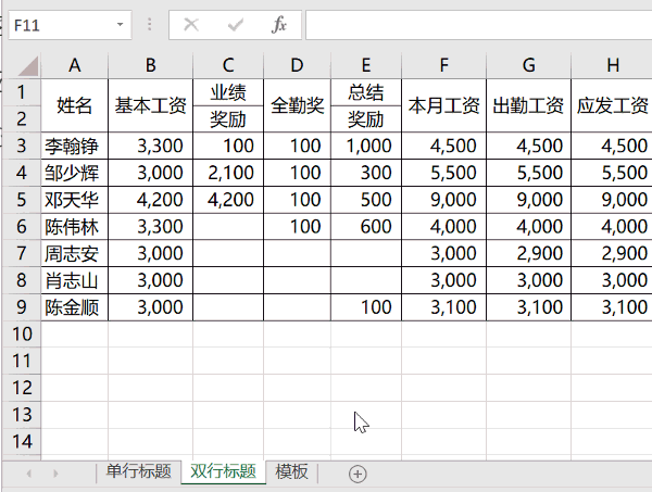 单双行工资条都支持,将工资明细表复制到模板这个表,单击二维码,选择标题的区域,即可生成工资条。