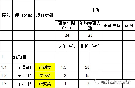 研制年限 和 年均参研人数,按照当前项目的实际情况填列,参见“表1.分项汇总表”中No.24和No.25。