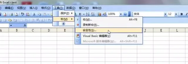 第一步:打开一个导入模板或者空白Excel,点击菜单【工具->宏->安全性】;