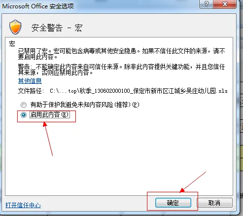 第五步:点击<选项>,选择“启用此内容(E)”,点击<确定>。