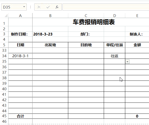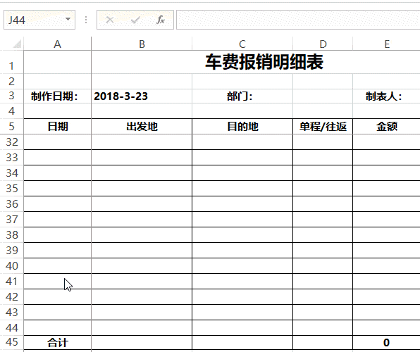 下面卢子教你制作一份车费报销模板,主要学的是方法。