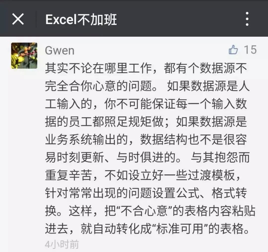 以前我负责整个公司的数据收集、处理、分析,有些情况我也深有体会。每个人都有自己的制表习惯,你收集起来的表格,什么格式都有。因为数据太乱,导致处理起来,花费了不少时间。