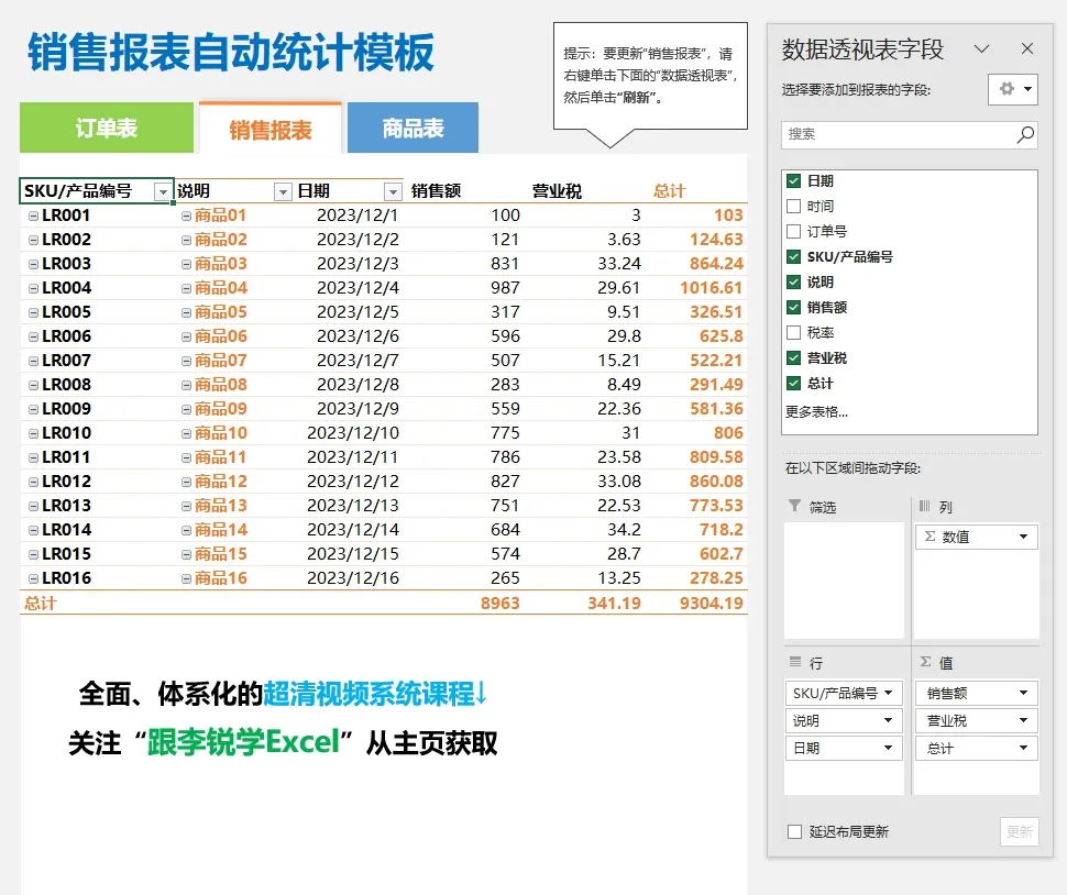今天介绍的案例:【Excel模板】销售报表自动统计模板。
