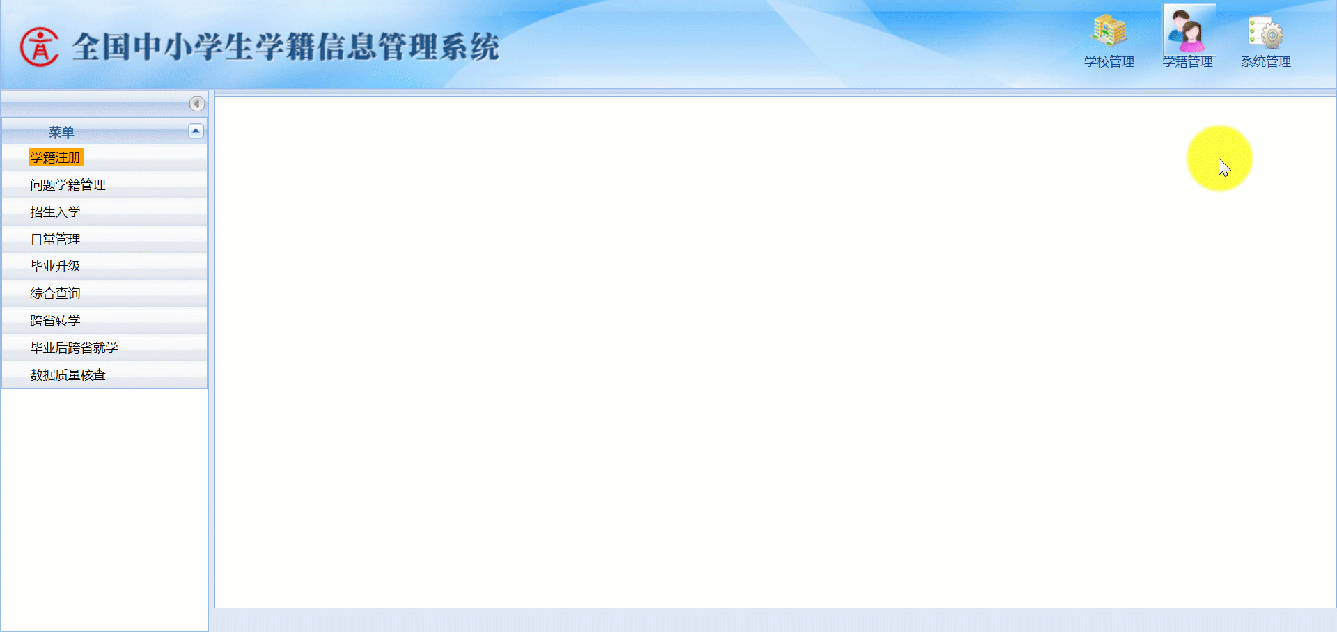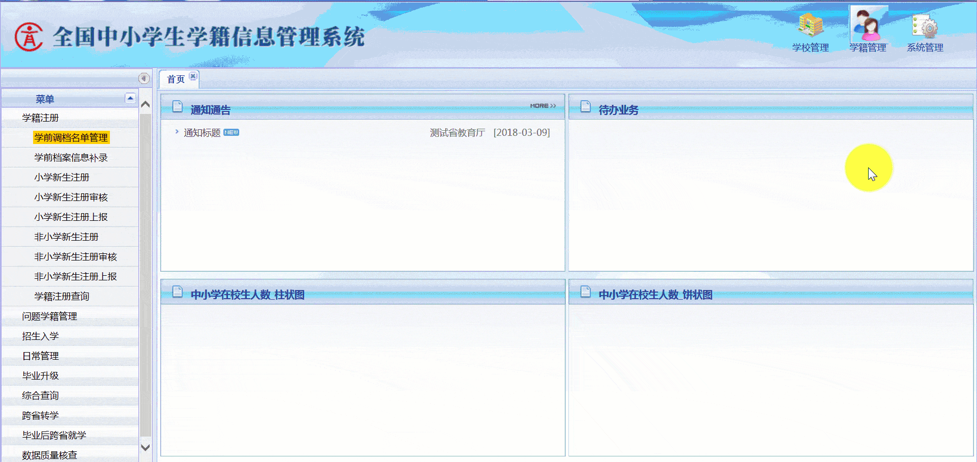 操作菜单:学籍管理->学籍注册->学前调档名单管理->调档学生导出,如下图所示▼