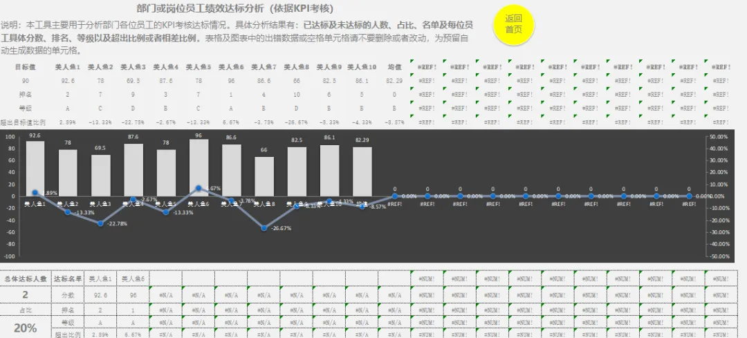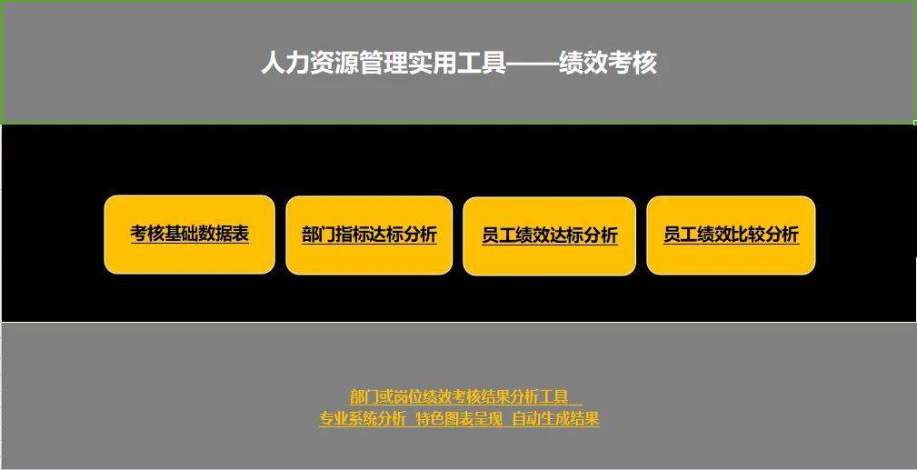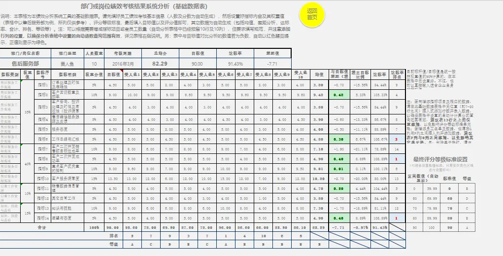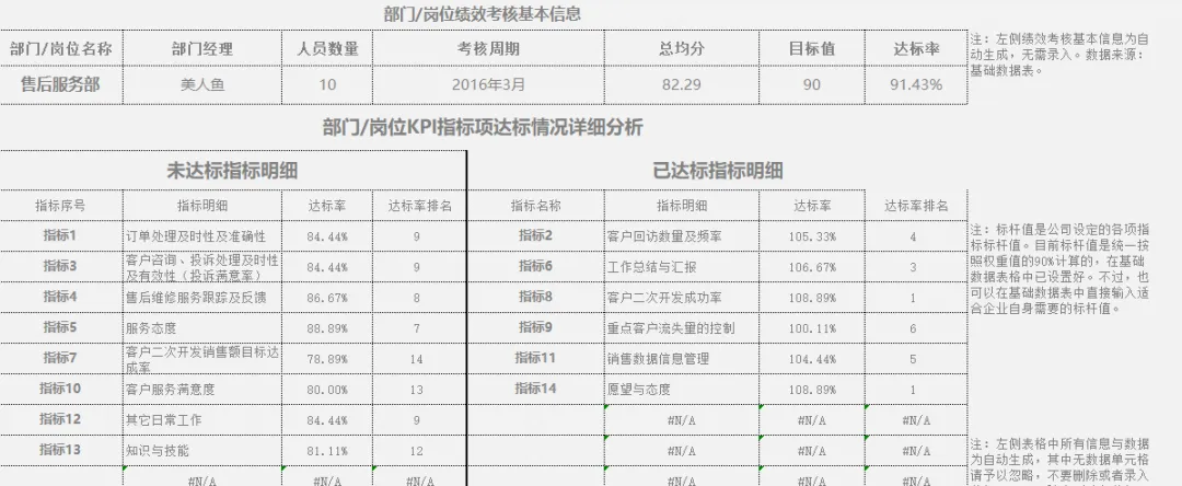 本模板包含:考核基础数据表、部门指标达标分析、员工绩效达标分析、员工绩效比较分析。