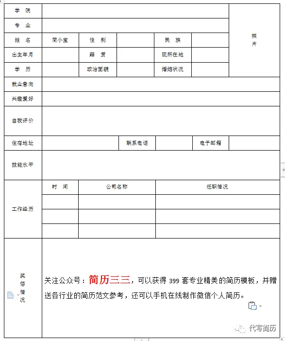 ”即可免费领取个人简历表格模板