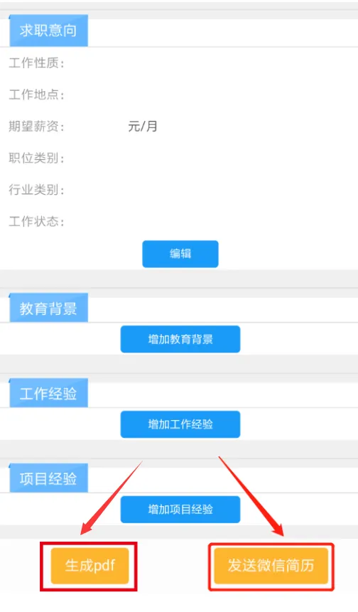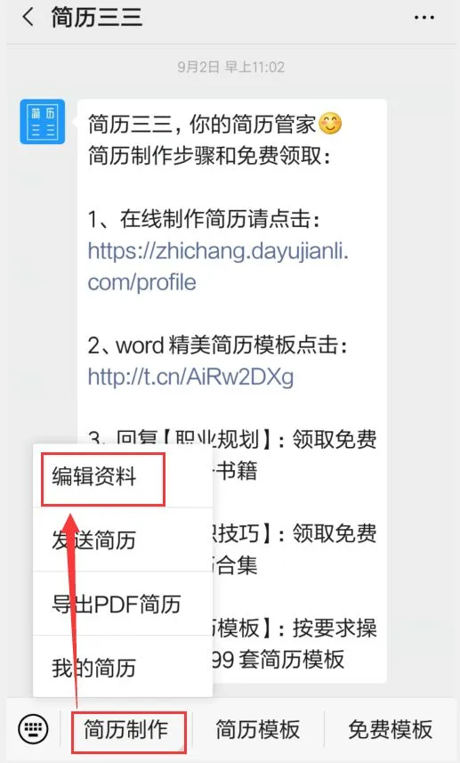 1. 点击简历制作-编辑资料,填写信息;