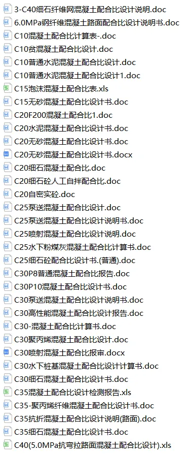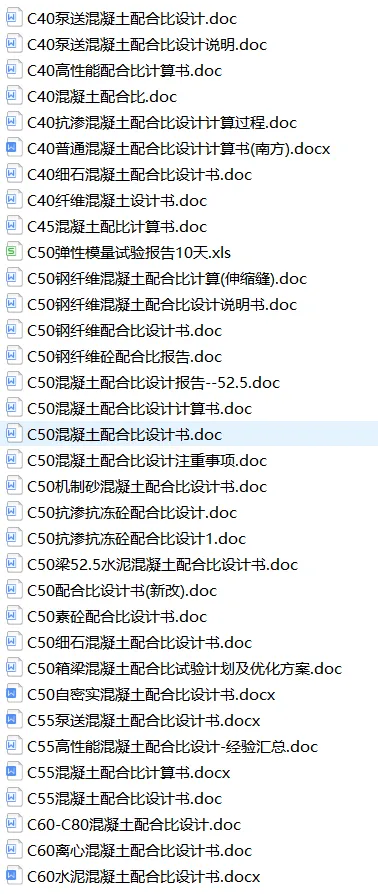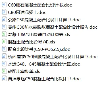 中岩培训团队通过半个月的整理,现汇总了混凝土配合比相关表格模板79套,全部为Word,Excel格式文件,以下为文件的详细介绍,文末有文件免费领取方式。