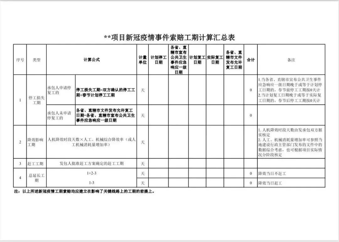 一、工期公式及表格