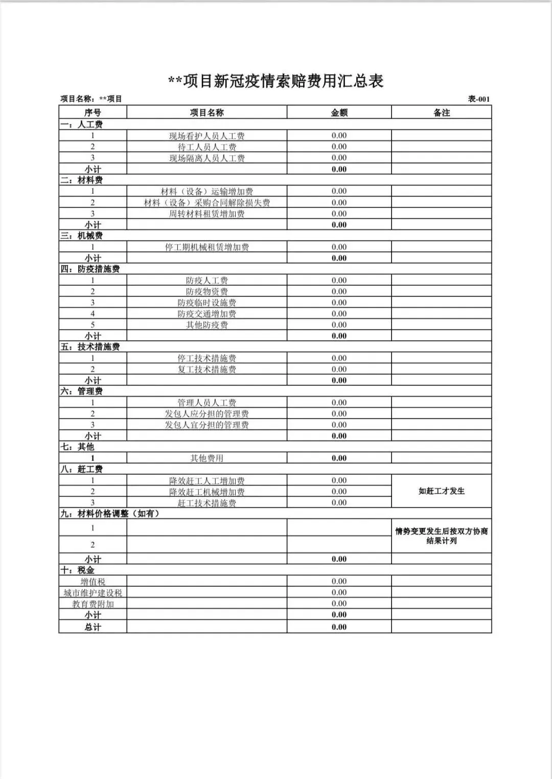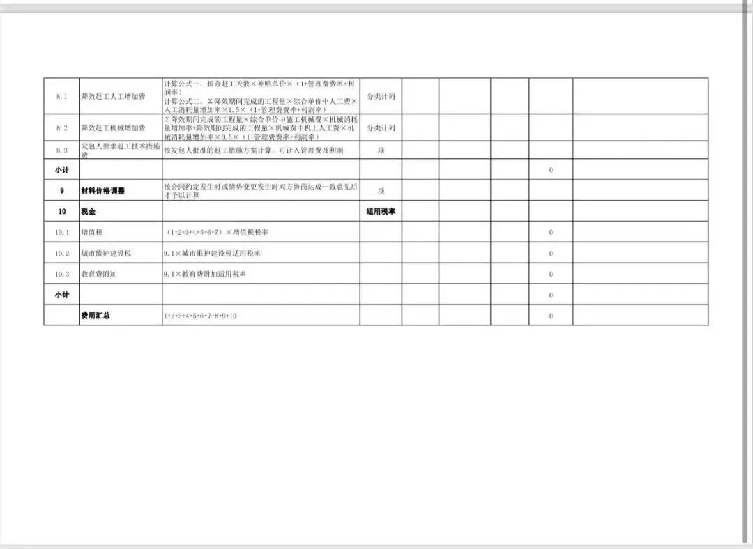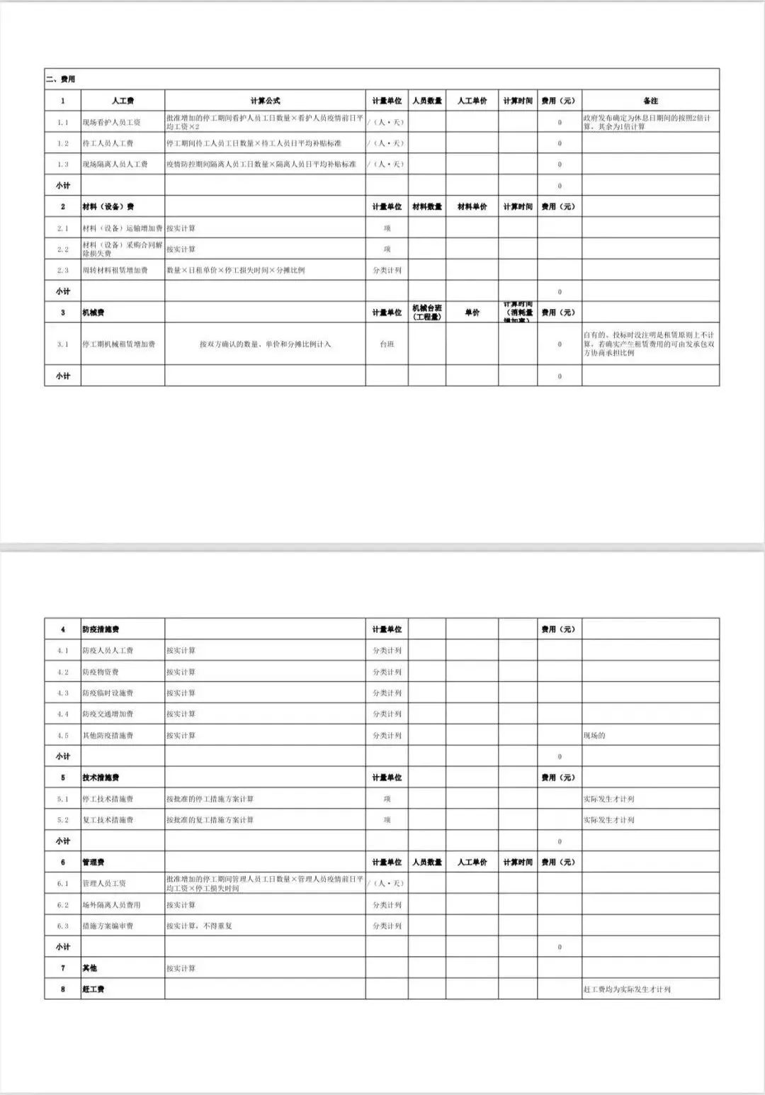 二、费用公式及表格
