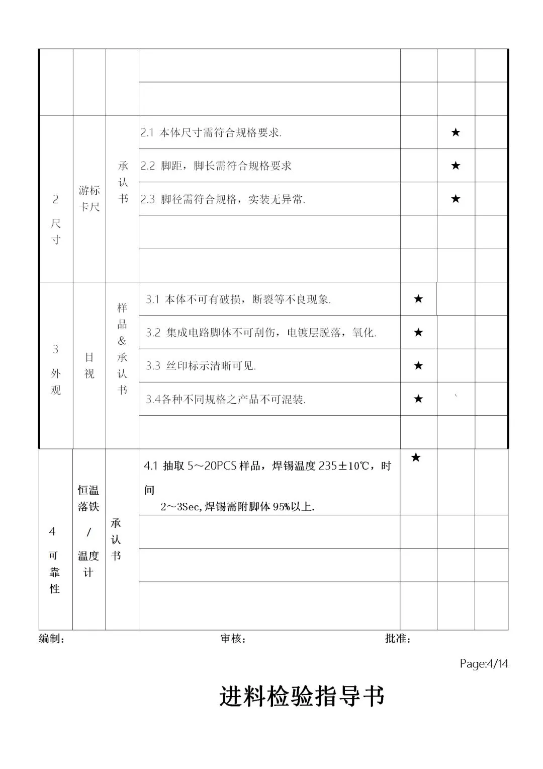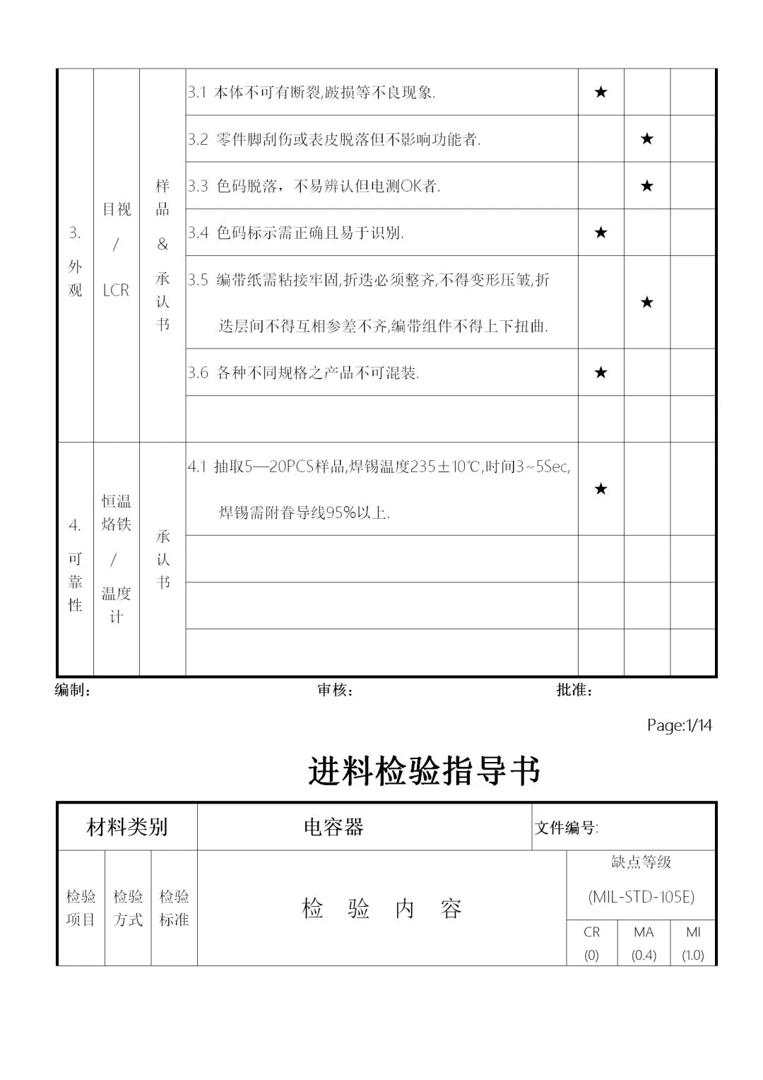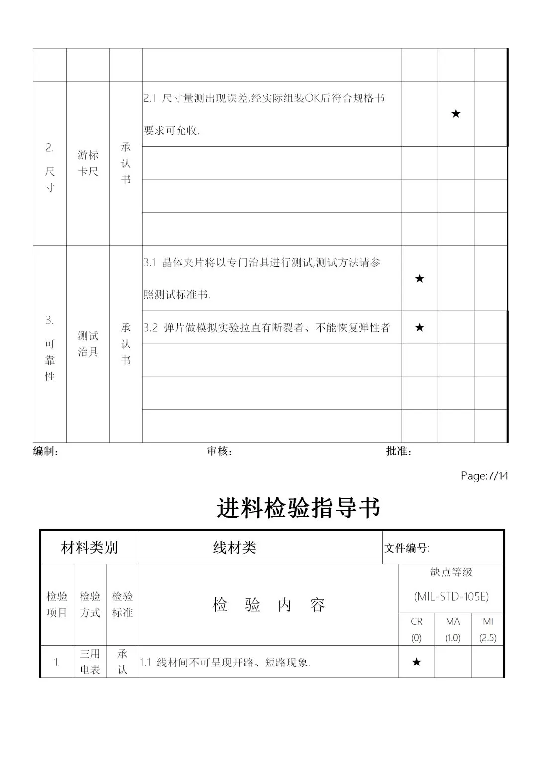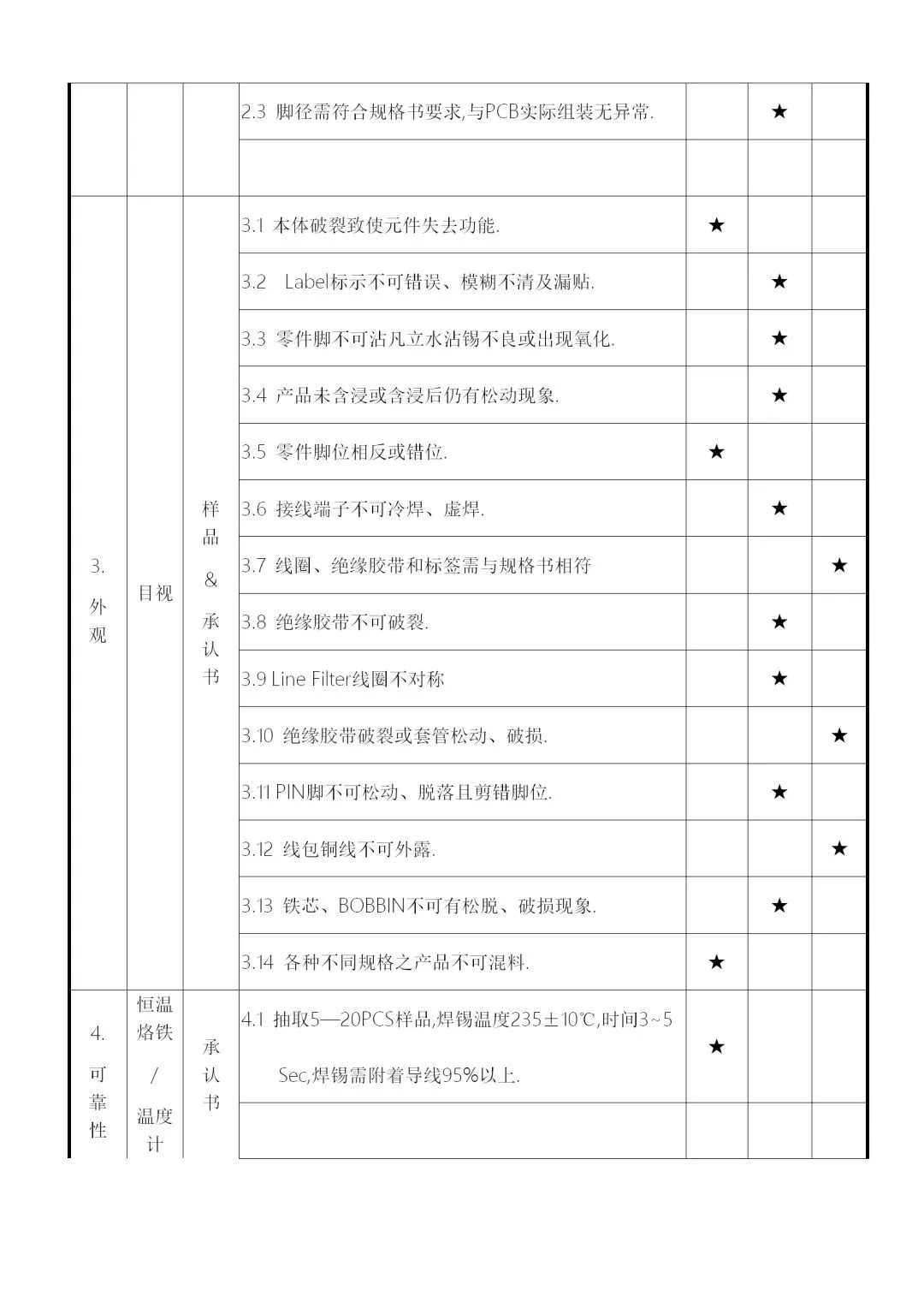 c. 受检验人员个性的影响,性了急的人在判定上容易主观,因此要注意客观公正。如不合格批放到制程,发生原材料问题,首先追究的是IQC人员责任。
